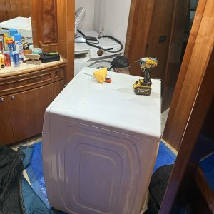 Appliances of broward Marine out in Hollywood, FL installing a new washer/dryer combo on an 85’ Westport Yachts motor yacht.